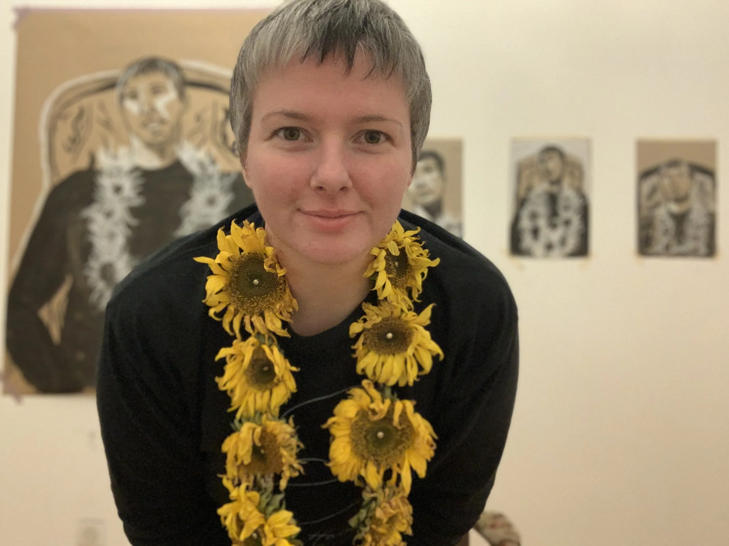 Having a studio for the first time allowed me to explore this piece and its emotion further. During my Open Studio, I had installed the chair from the drawing in front of the artworks with the wilting and dying sunflower lanyard draped over it. The invitation was hanging silently in the room to take a seat and feel the silent and invisible burdens that people in my community carry. In igniting this empathy and awareness, its intention was to also invite kindness to everyone as we all carry silent and invisible burdens that can weigh us down.