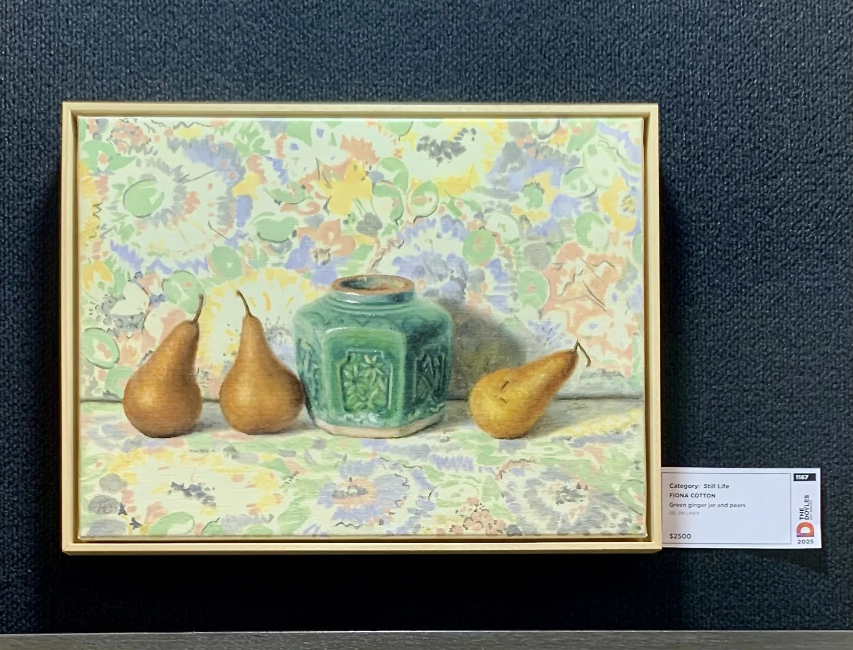 The Opening of the Doyles was a lot of fun with its own little red carpet and delicious locally made nibbles. Loads of people were there and it was lovely to meet a whole bunch of new artists, other volunteers and staff. The other lovely surprise was catching up with fellow Canberran artist Fiona Cotton again who I had seen at the Tweed Regional Gallery whilst she was doing her residency. She had two of her artworks in the Still Life category and was super sweet to introduce me to the judges that were able to make the Opening. The judges this year were Susi Muddiman OAM, Amber Creswell Bell and Jessica Le Clerc. If you would like to learn more about these powerhouse women and their valued contribution to the arts, click here.